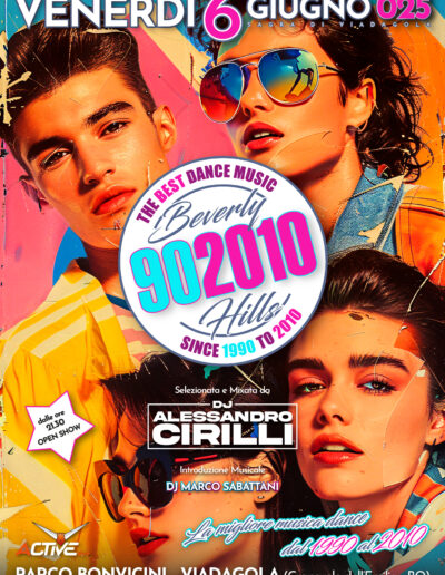 Un evento per chi è cresciuto ed è appassionato di musica Dance, proprio nel periodo in cui il telefilm Beverly Hills ha segnato un’epoca. dai primi anni ’90 fino al 2010, un ventennio evolutivo per tutti i locali notturni.