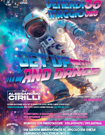 Musica da ballare! Semplicemente .. alzati e balla! Musica Dance, Pop, Rock, Balli di Gruppo e Radiofonica, senza limiti di tempo, generi o età, per il massimo divertimento di tutti i partecipanti. 2 Dj’s per un set ricco di brani!
